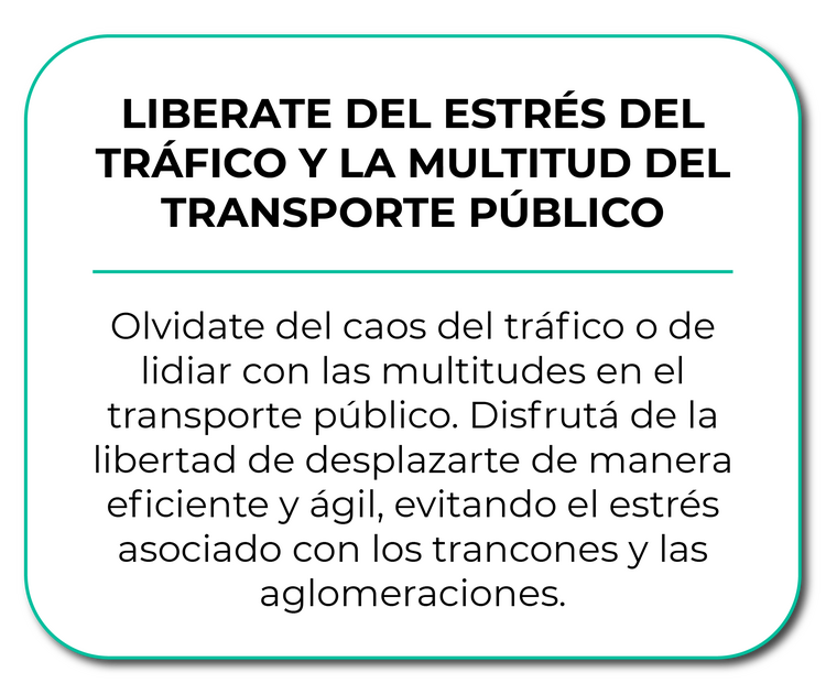 Ahorrá tiempo y dinero. Decile adiós al tráfico y disfrutá de un aire más limpio mientras te desplazás.